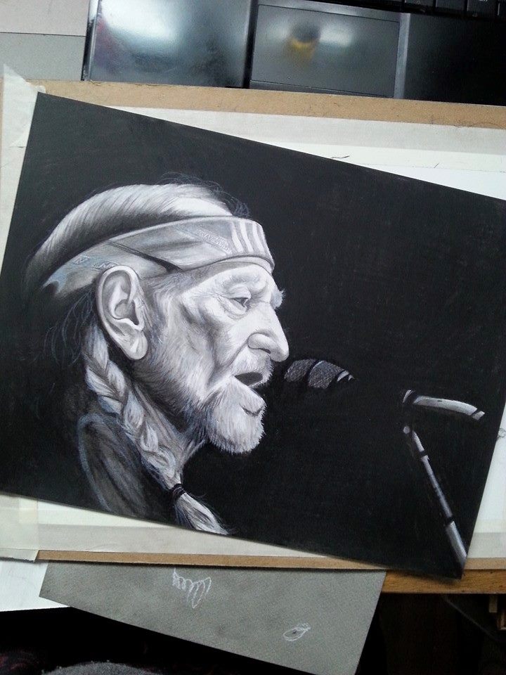 Willie Nelson. Charcoal and graphite on bristol.Dolly. Charcoal and graphite on bristolNewfoundland Dog. Graphite on paper.graphite on bristol.Graphite on bristol.Graphite on bristol.Black and white charcoal on grey paper.
